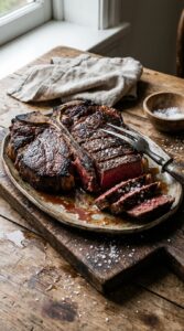 Grilled flank steak on flatbread with goat cheese, fresh blackberries, watercress, and pine nuts. Drizzle with vinaigrette and serve immediately. It looks cool, raises eyebrows and tastes amazing.