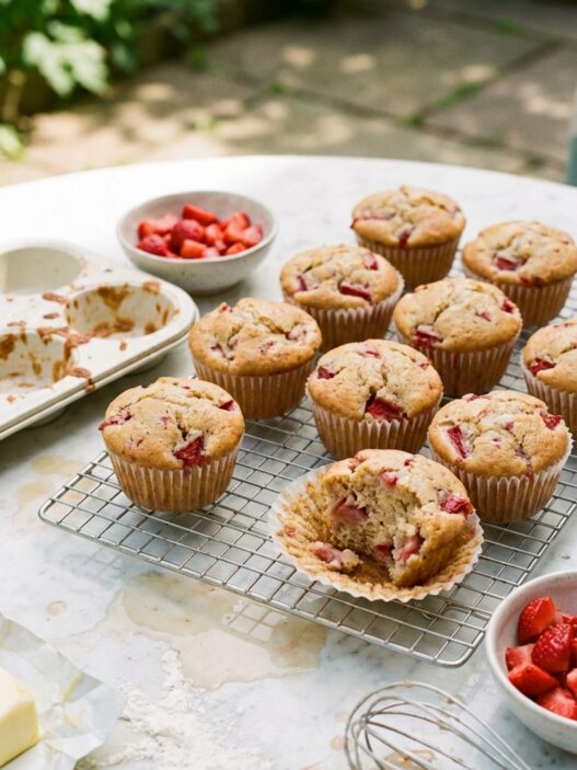 Strawberry cupcakes made with fresh strawberry puree and chopped strawberries in a vanilla butter batter. Naturally pretty, moist, and full of real berry flavour.