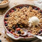 In my opinion, vanilla ice cream is the only topping that is the perfect accompaniment to fruit pies, crisps and cobblers. Feel free to let your creativity run wild on what to top your pie with, but in my dish, vanilla rules.