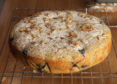 Once the cake has cooled, 15 minutes in the pan, then completely on a rack, decorate as you will. I dusted mine daintily with powdered sugar and sprinkled with sliced almonds before I devoured it.