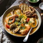 Chef Chris Hastings take on a seafood stew. Rich broth, fresh seafood, and a touch of Southern charm.