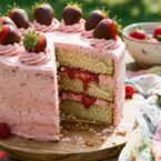 Layers of almond cake, strawberry compote, and luscious buttercream create a stunning dessert. Perfect for a special occasion or a delightful weekend treat.