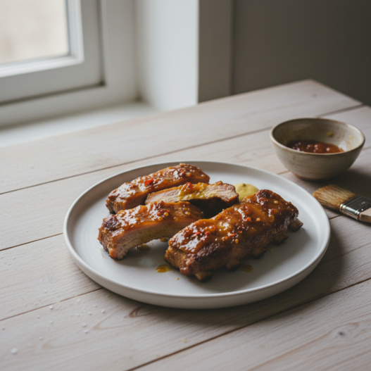 - Brush the glaze over the ribs and cook for another 30 minutes, brushing with more glaze every 10 minutes.