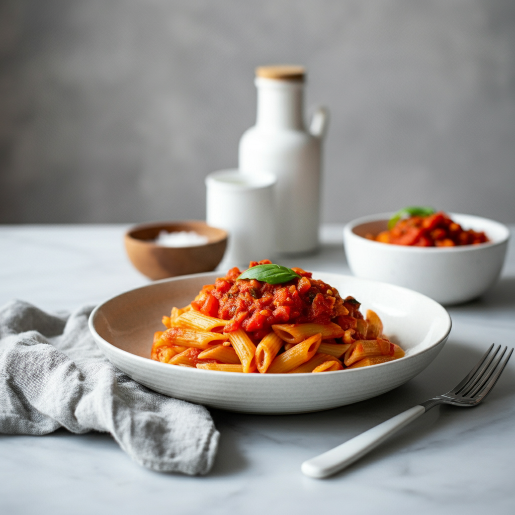 A vibrant pasta sauce, bursting with the fresh taste of San Marzano tomatoes and a kick of chili. Perfect for a weeknight meal!