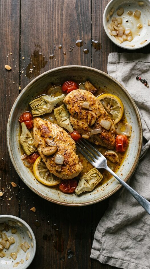 A summery date-night dish! Bright lemon and artichoke flavors complement the tender chicken.
