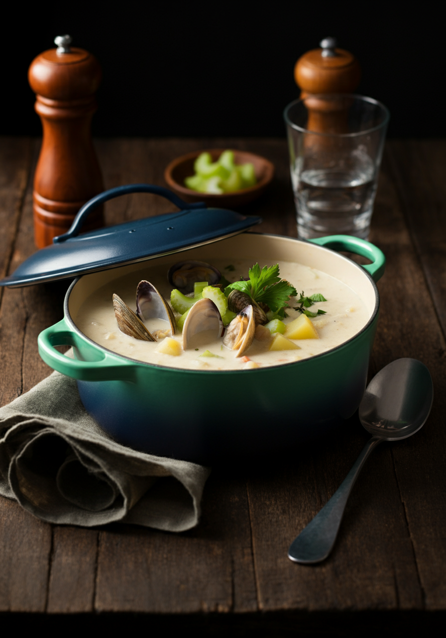This authentic New England Clam Chowder is a creamy, hearty soup filled with tender clams, crispy bacon, and perfectly cooked potatoes, making it a comforting classic perfect for any occasion.