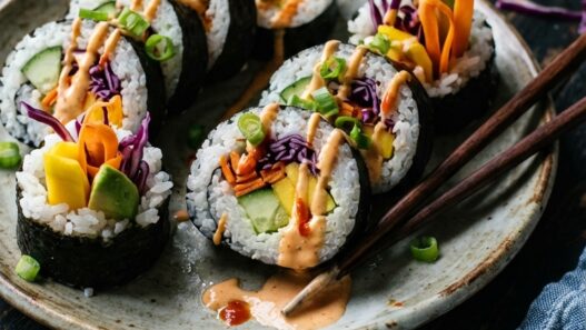 Colorful Veggie Sushi Roll and Spicy Mayo