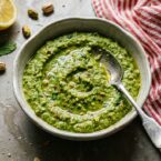 Mint is not interchangeable with basil here: it’s the point. It gives the pesto brightness that basil wouldn’t. If the mint flavor reads as too strong, cut it back by a quarter cup and substitute flat-leaf parsley. Don’t use dried mint.