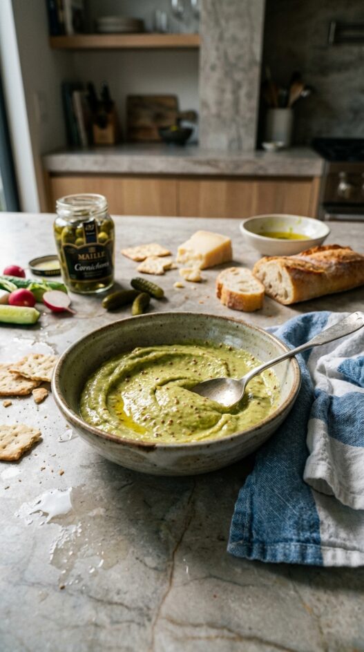 Creamy, thanks to the avocado, and full of flavor from the Maille Old Style mustard, this avocado-mustard dip is great with fresh vegetables, crackers, pretzels or dolloped on a cheese board.