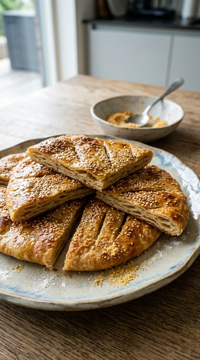 Bakarkhani is best eaten the day it is baked, when the layers are at their crispest. Stored in an airtight container at room temperature it will keep for 2 days; after that the texture softens. Reheat in a 300°F (150°C) oven for 5 minutes to restore some crispness.