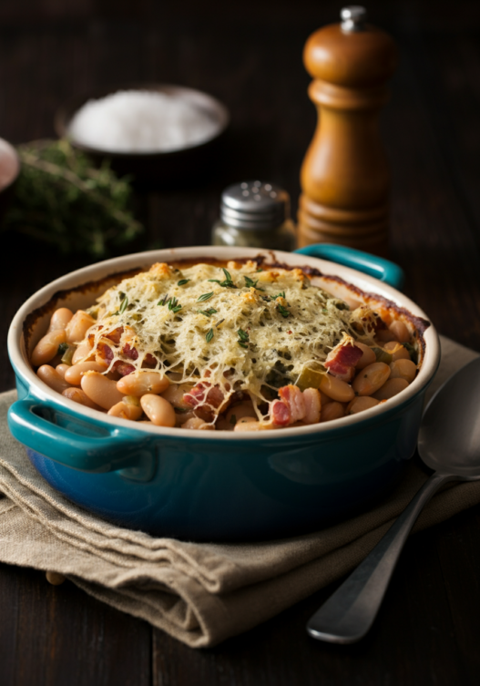 Starting from the dry beans is an absolute must for this recipe—you just won’t get the same texture or flavor with canned beans. But this recipe really is pretty simple. Soak, cook, and drain the beans. Mix them with pancetta and some aromatics, sprinkle them with cheese and breadcrumbs and bake them until they’re crispy.