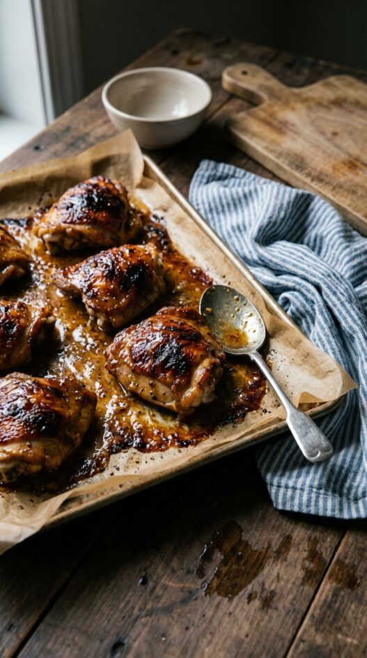 Sweet and savory honey mustard glaze coats juicy chicken thighs, baked to perfection. A simple weeknight dinner thats ready in under an hour.