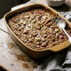 Sweet, tart and with warm ginger and cinnamon, this baked oatmeal with spring rhubarb is a great breakfast on a cool morning.