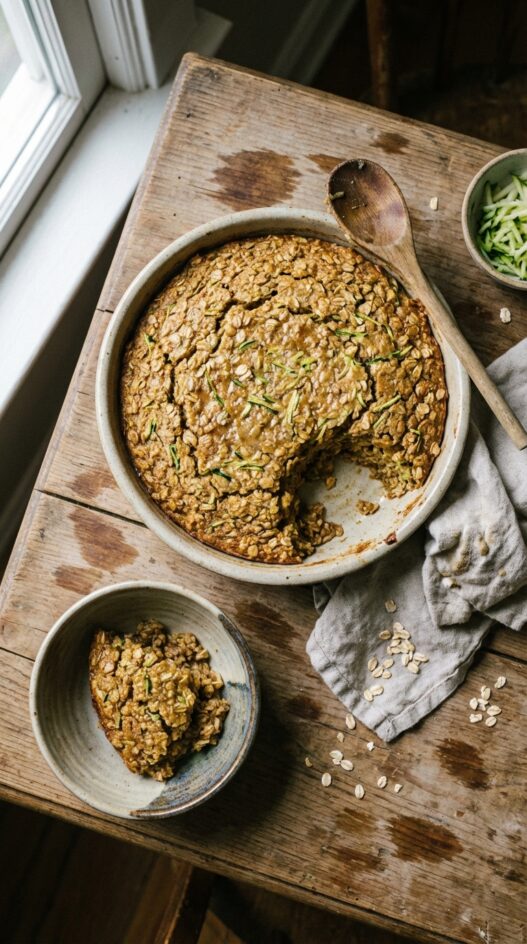 Sweet and spiced baked oatmeal gets a healthy boost from zucchini. A perfect make-ahead breakfast to enjoy all week.