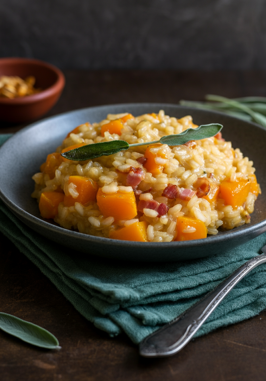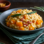 Without standing over the stove, make creamy risotto that will melt in your mouth with sweet and salty butternut squash and pancetta flavors.