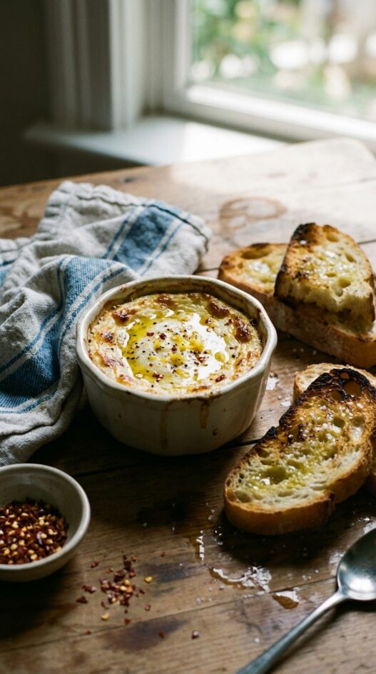 Baked ricotta takes ten minutes to prepare and twenty to bake. Four ingredients if you count salt and pepper separately. Good warm from the oven with ciabatta and it holds its own against anything fancier on a holiday appetizer table. Small effort, strong return.