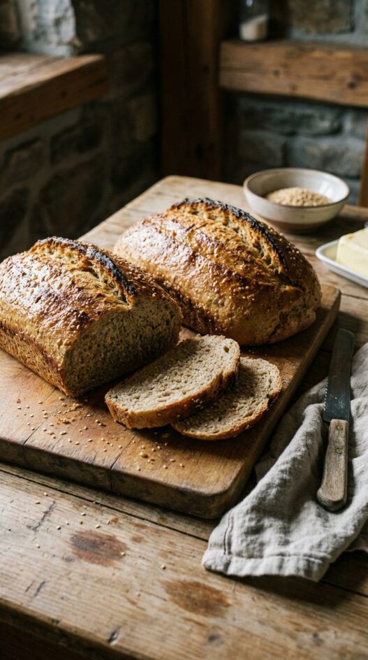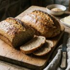 A chewy, slightly sweet loaf made with cracked wheat, molasses, and sesame seeds. Perfect for sandwiches or toast!