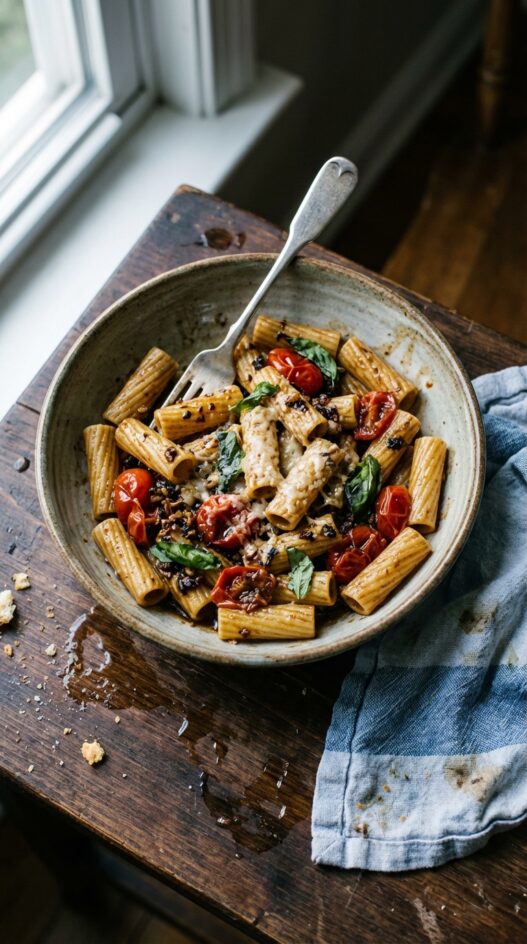 20-minute pasta for one, my Tuesday default.