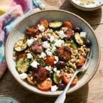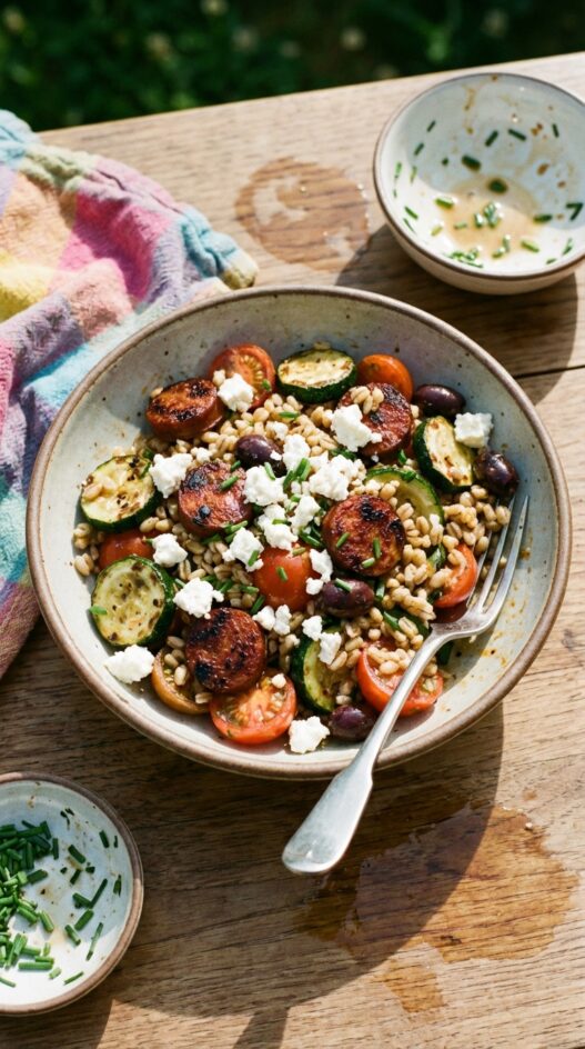 Grilled chorizo and zucchini tossed with barley, olives, and a bright lemon-herb dressing. Perfect for a warm-weather barbecue.