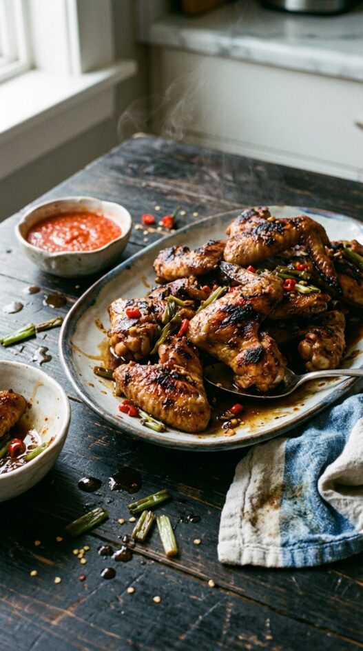 Get your hands on these smoky, savory BBQ chicken wings with a tangy, spicy chili sauce. Grilled over charcoal or roasted in the oven, they are perfect for summer. This recipe brings a taste of Malaysia straight to your grill. The secret lies in the marinade: a balanced blend of soy sauce, honey, and other key ingredients. The wings soak up these flavors overnight, then hit the grill, where they cook to a perfect char. The accompanying chili sauce, made from a mix of fresh chilies, ginger, and garlic, adds just the right amount of heat. It’s an easy, straightforward way to elevate your next BBQ with a touch of global flavor. Enjoy the journey.