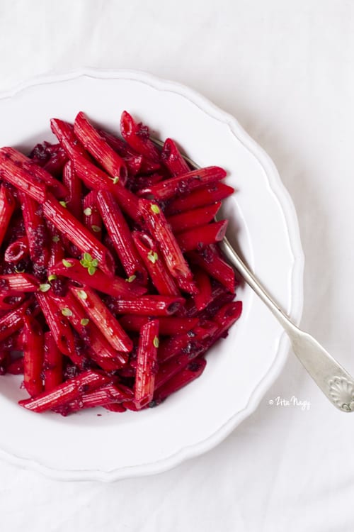 Beetroot Cream Penne with Toasted Poppy Seeds