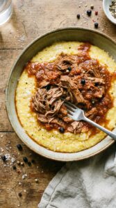 Beginner’s Luck, 12 hour pork over blue corn grits