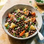 A vibrant salad packed with black chickpeas, potatoes, and fresh veggies. Perfect as a light lunch or side dish.