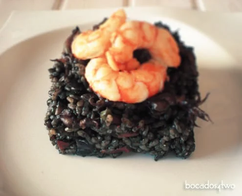 Delicious Black Rice with Baby Squid and King Prawns.