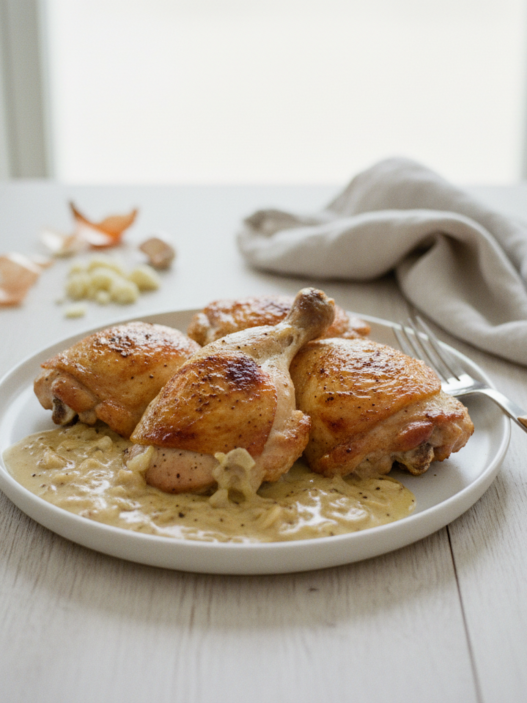 Savory Roasted Chicken Thighs with Creamy Shallot Sauce