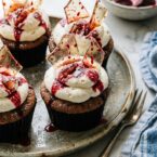 Halloween baking has a tendency to go one of two ways: impressive to look at and terrible to eat, or fine to eat and completely unimaginative. These land solidly in the first camp without sacrificing the second. Easy fix. Chocolate cupcakes with vanilla whipped cream frosting, finished with a red sugar syrup that drips down the sides in a way that makes adults uncomfortable before they eat one anyway. The stained-glass sugar work sounds technical but it is a simple caramel colored with red food dye. Nail the temperature and you get a brittle, translucent shard that sits in the frosting like something from a prop department.