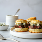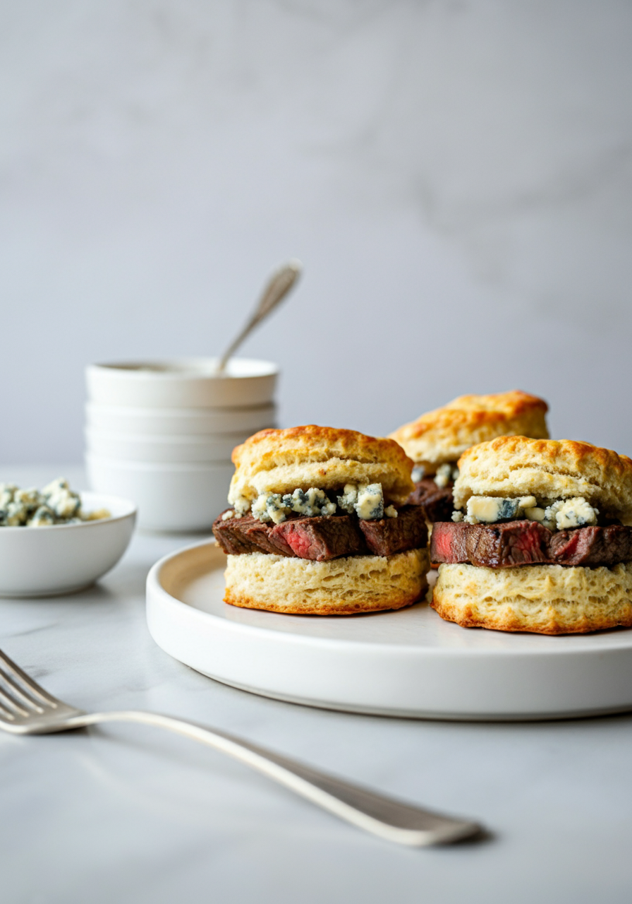 Juicy steak, creamy blue cheese, and a fluffy biscuit make a satisfying meal. Perfect for a weeknight dinner or a casual lunch.