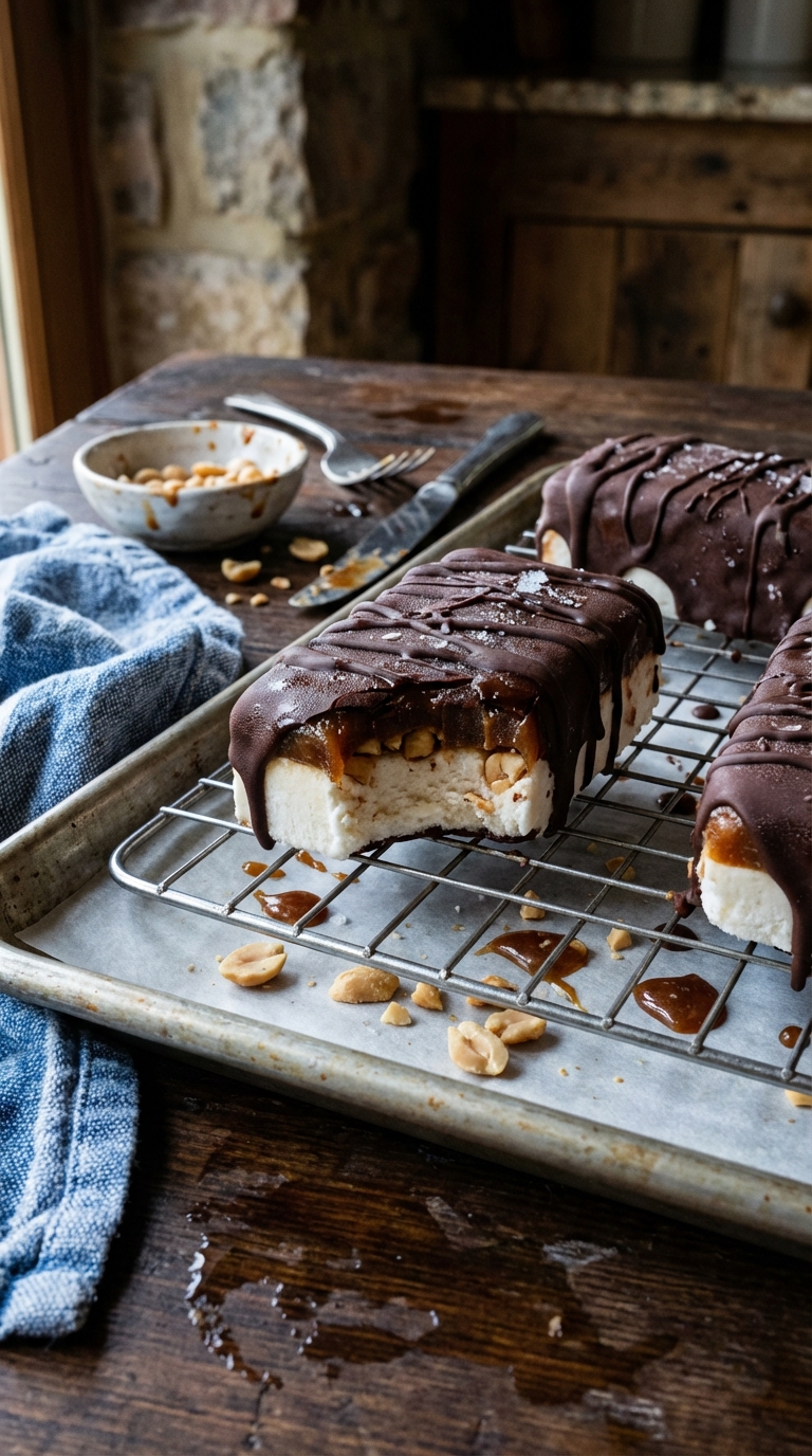 - Dip frozen bars in chocolate. Place on a wire rack on a sheet pan and freeze until set.
