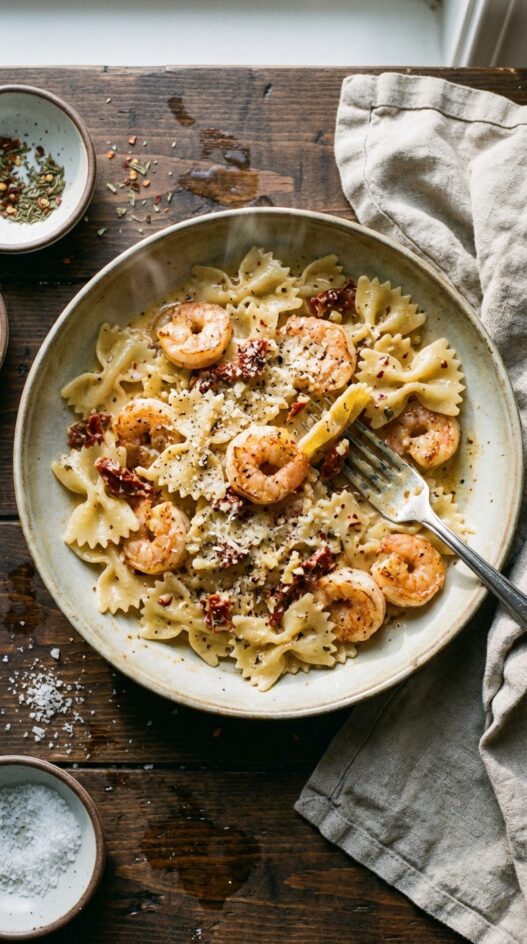 A simple, delicious weeknight pasta dish. Creamy shrimp sauce over bow tie pasta—perfect for busy evenings!