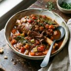 I keep coming back to this recipe because the method is forgiving and the result looks like you cooked all day. Four shanks, a bottle of wine, whatever sturdy herbs you have. The braising liquid reduces into a sauce on its own. No extra work. Serve it over polenta or mashed potatoes and let people soak up every last drop.