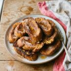 Custardy French toast with a sweet cinnamon-sugar coating. A delightful breakfast or festive treat!
