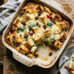 A cheesy, decadent breakfast casserole perfect for a weekend brunch. Make it ahead and bake in the morning!