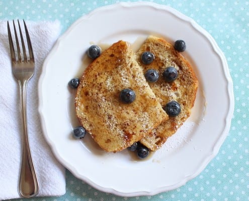 I have broiled my French toast two ways with similar results. It all comes down to your textural preference. Sometimes I pour the egg mixture into a greased pan, dip and flip the bread and then broil everything like a French toast casserole. The resulting French toast has a softer texture. Other times I dip the bread slices in the egg mixture, let excess egg drip off and then broil the bread on a greased baking sheet. This French toast has a bit more texture with a slightly crusty exterior (although it’s still very soft, especially when drenched in syrup). I prefer the second method with firmer French toast but my boys devour it both ways.