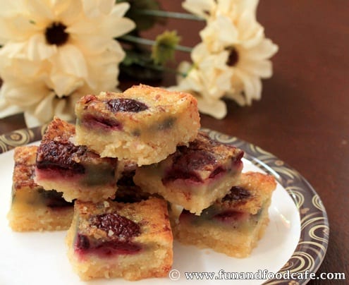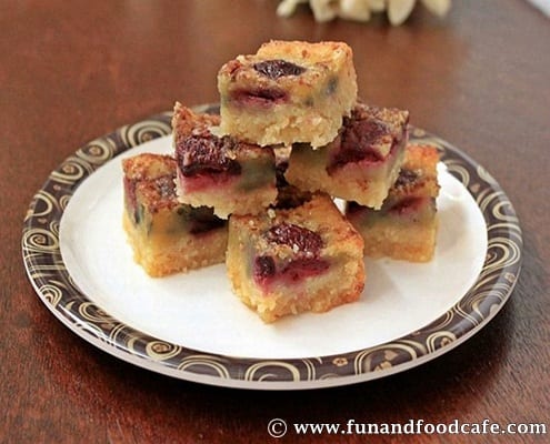 If you taste them immediately, you will get an eggy taste and smell; but don’t worry, this will go away as the bars cool down. In fact, they taste much better the next day! Store in an airtight container at room temperature for up to 3 days. Use fresh cherries for the best flavor, but frozen can be substituted if necessary.