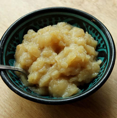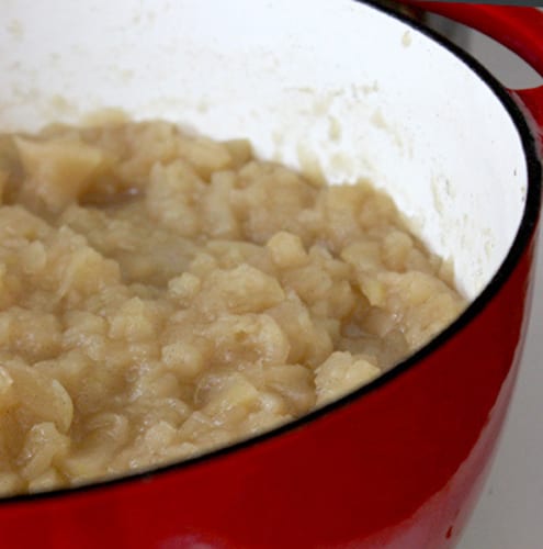 Vanilla bean paste is a sugar solution made from scraped out vanilla beans, and is a much easier alternative to using a vanilla bean. Nielsen-Massey sells the most commonly available version, which is available at many gourmet stores. If you don’t have paste you can use two actual vanilla beans, cut lengthwise and insides scraped into the pot. Include the beans themselves as well, making sure to remove them or avoid them while eating the applesauce. They will continue to add flavor as the applesauce sits in the refrigerator. Or, use one vanilla bean and 1 Tbsp. vanilla extract. Or, use 2 Tbsp. vanilla extract, but the flavor will not be as strong.