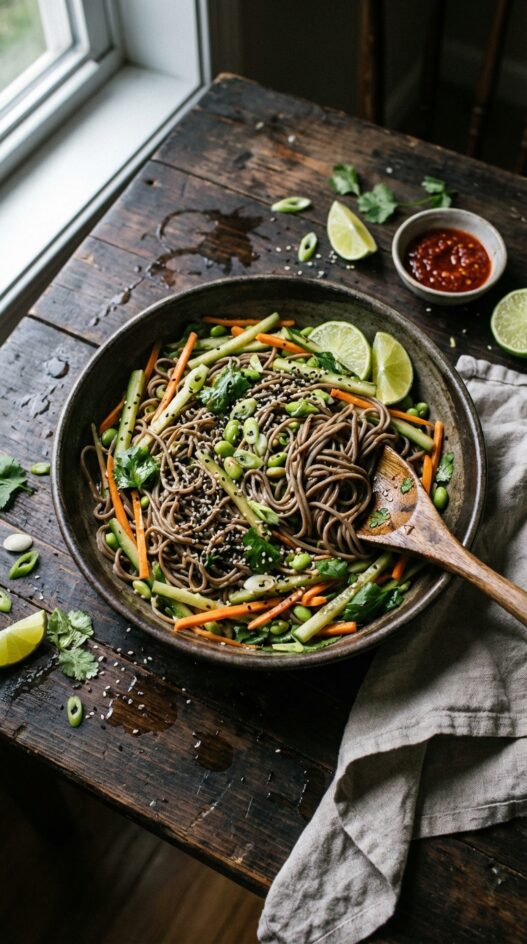 Buckwheat Soba Noodle Salad with Chili Dressing