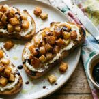 Sweet and savory roasted butternut squash and apples top toasted bread, drizzled with a homemade balsamic glaze. A perfect autumn appetizer!