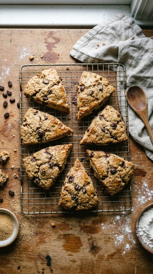 Buttery, chocolate-studded scones with a rich espresso kick. Perfect for breakfast or an afternoon treat.