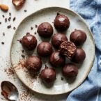 Rolled up with dark chocolate, cacao nibs, almonds, and oats, these truffles taste like dessert, but actually come packing a punch of nutritious energy.