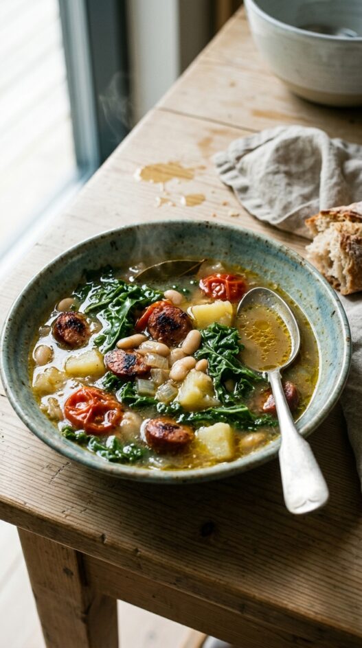 Between the sausage, potatoes, beans and kale, this soup covers all the food groups and is hearty enough to constitute a meal all on its own.