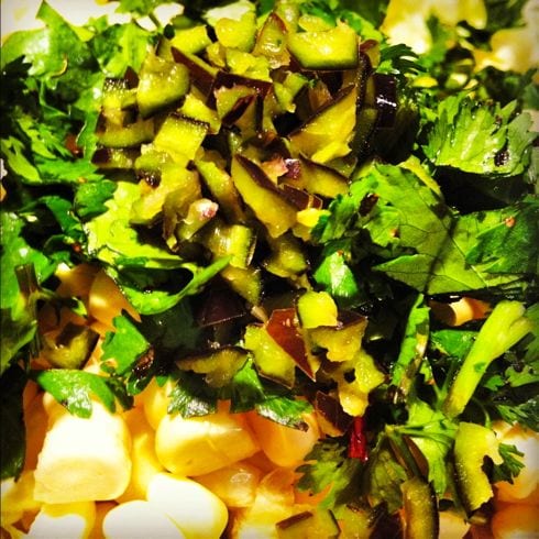 - In a bowl, mix corn kernels, cilantro, Czech Black peppers, green cabbage, salt, cumin, and lime juice. Prepare this 4-24 hours ahead of time to allow the cabbage to soften and flavors to marry.