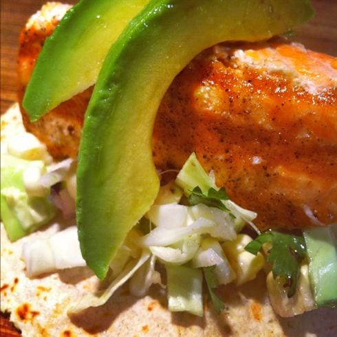 - Assemble the tacos by placing a portion of grilled salmon on each tortilla, topping with the cabbage-corn salsa, and adding extra lime juice if desired.