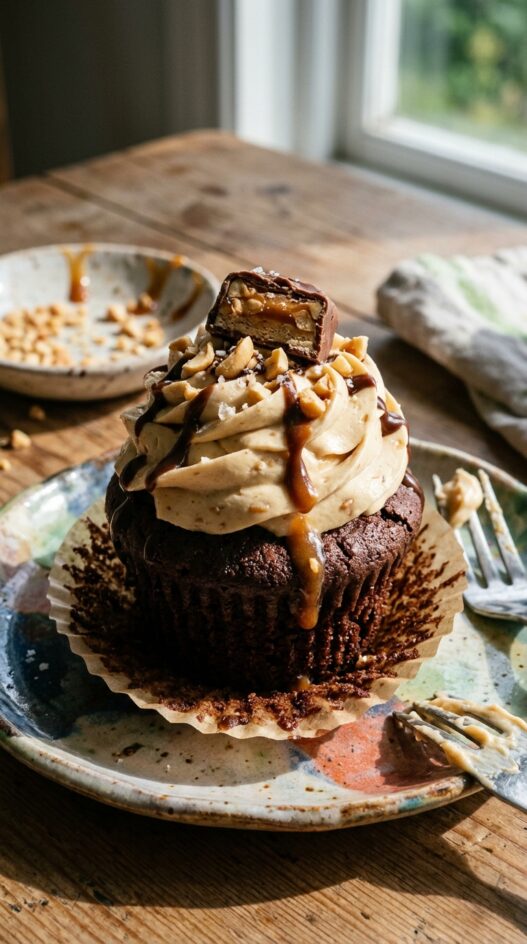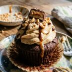What I think I love most about this snickers cupcake recipe is the cake. It’s definitely high on my favorites list! It’s super moist, fluffy, and so chocolatey!