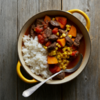 A hearty beef stew, a Patagonian ranch staple. Sweet potatoes, dried apricots, and mushrooms add depth.