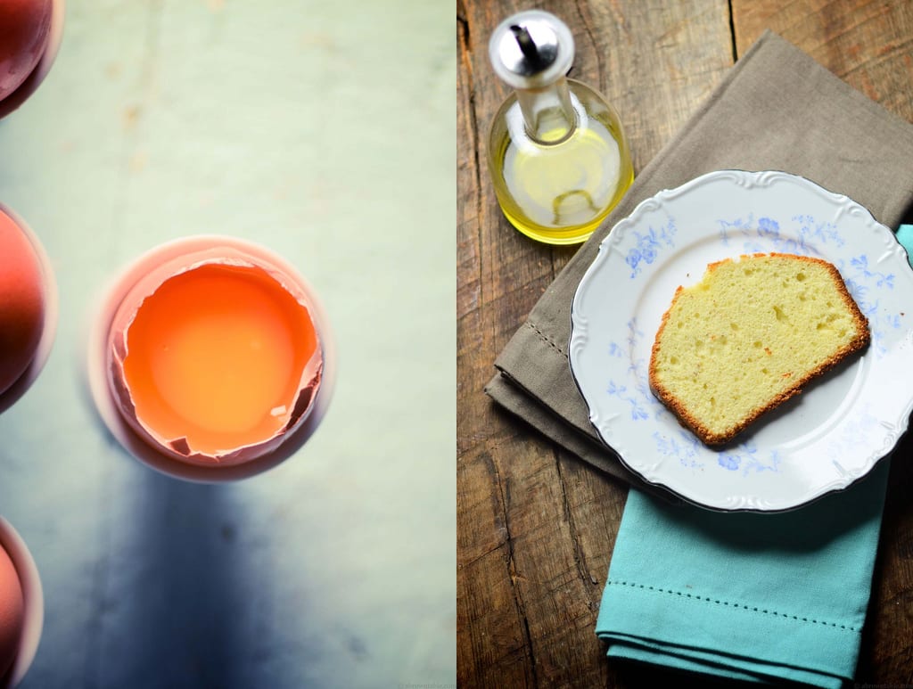 I find olive oil pound cakes to be a little more fascinating than the butter based versions because the oil affords a lot more flexibility if you want to get adventurous with flavors. It’s a good and heavenly marriage of flavors! A little bit of an herb or a spice seasoning can go a long way with olive oil and this remains true for most olive oil based cakes. This cake also has a slight nutty flavor from ground almond meal and uses skim milk (you can go with whole milk, if you prefer) This version of the pound cake, also uses a sprinkling of freshly ground green cardamom pod seeds and a pinch of saffron strands. The light fragrance of the freshly ground cardamom brings a sweet flavor to the cake while the saffron brightens the color of the yolks in the cake. What could be more wonderful than something so simple and delicious for an everyday cake.