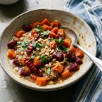Let the ginger and curry warm you through in this hearty carrot and beet curry dish. A simple recipe with rewarding flavors.